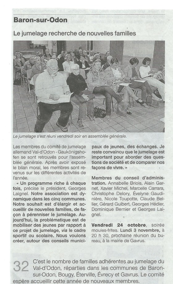 SCAN0006 Publié par xaviermichel le 25/10/2014 Article Ouest France paru le mercredi 22 octobre 2014. C'est une image pour Assemblée générale ! Generalversammlung !. Navigation des images ← Précédent
