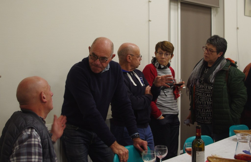 Le Président a évoqué les prochaines activités à venir le 3 décembre un atelier déco de Noël à Baron, le Marché de Noël d’Evrecy les 10/11 décembre et celui de Baron le 16 décembre. A l’occasion du 25ème Anniversaire du jumelage en Allemagne à la Pentecôte 2023, un petit sondage a été réalisé sur place auprès des adhérents afin de retenir les dates du séjour à Gaukönigshofen (soit du Ve 26 mai au soir au 31 mai au matin, soit du Ve 26 mai au soir au Ma 30 mai au matin). Le Président a demandé également à l’assistance d’apporter des idées sur le ou les cadeaux à offrir à nos amis allemands. La soirée s’est poursuivie par un apéritif dînatoire.