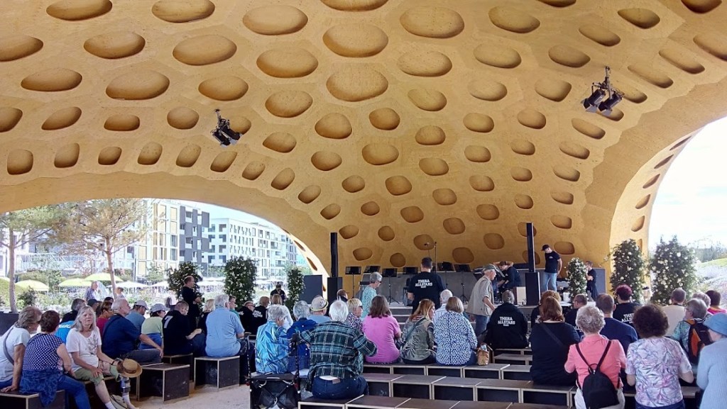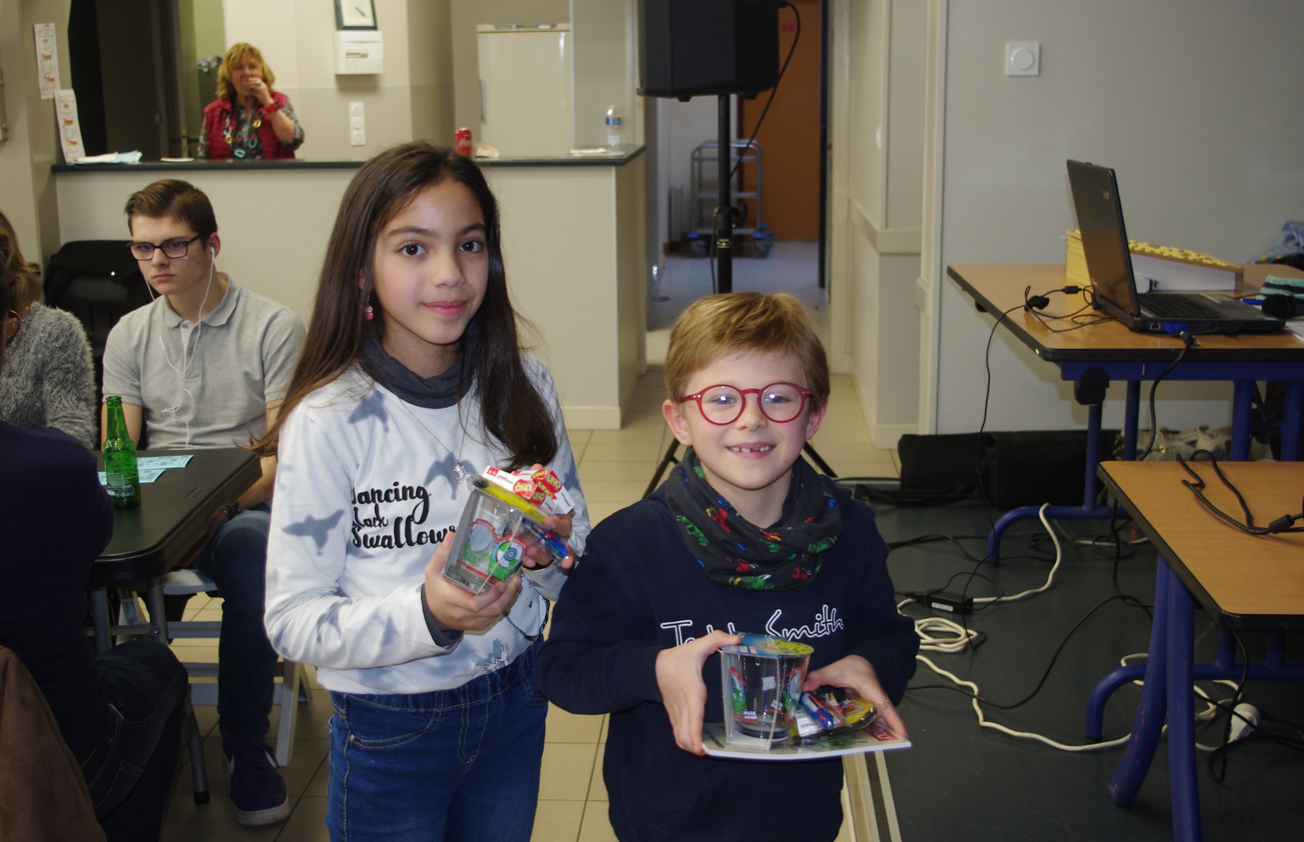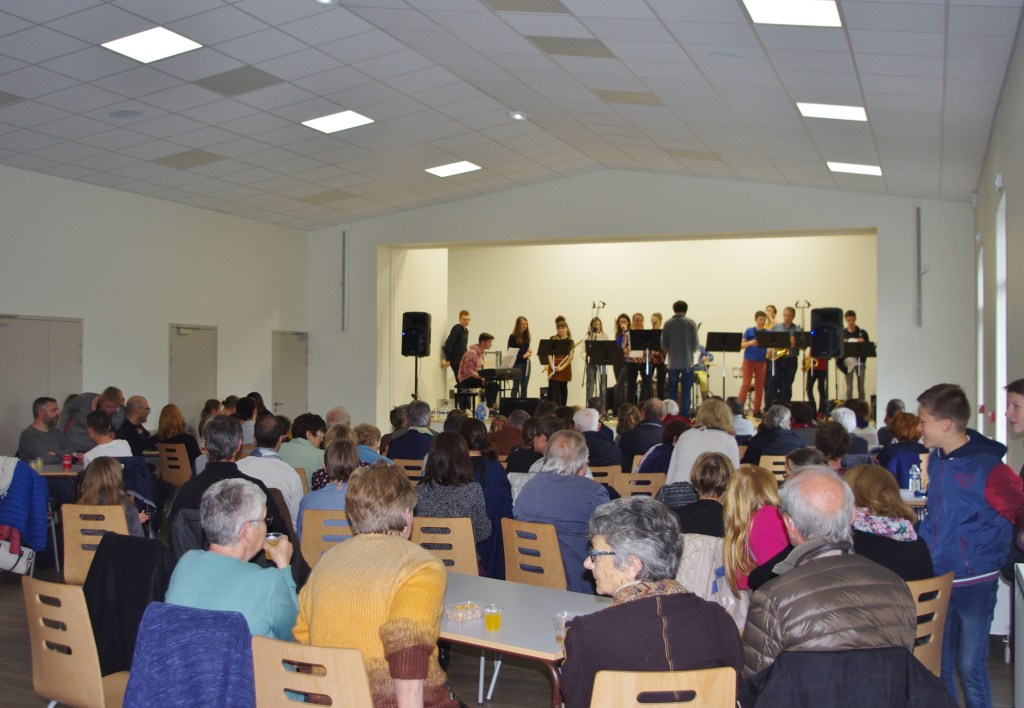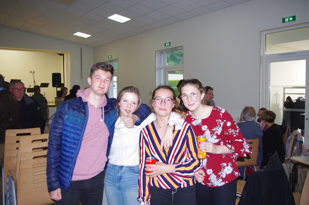 Vers 21h remise des cadeaux par le comité français « la pierre de Caen avec la gravure d’un « Drakkar » et de 5 magnums de champagne. Des pots à lait de caramels d’Isigny sont remis également à chaque famille allemande. La fête continue avec le gâteau d’anniversaire et le groupe français Amnésia animant toute la soirée dansante avec la belle voix d’Erica accompagné de Jules, Romain et Noah pour la musique.