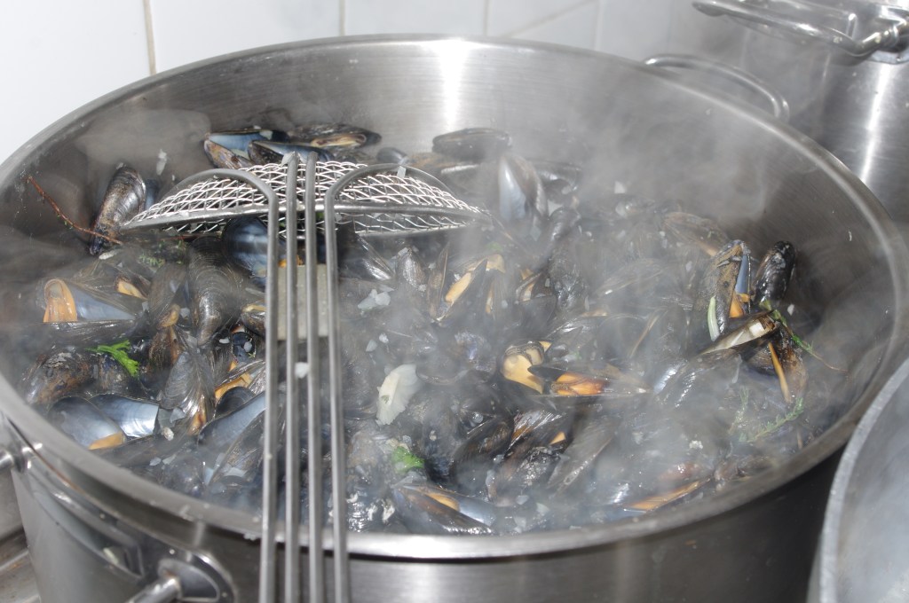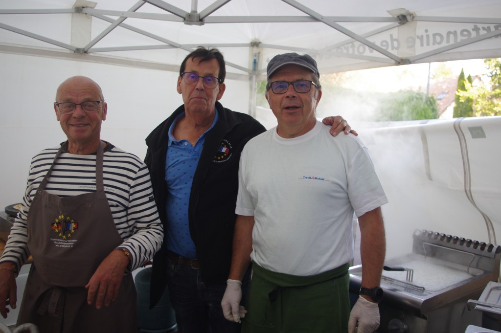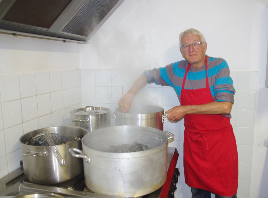 A notre connaissance, nous sommes la seule association a proposé sur le canton d’Evrecy cette soirée « moules/frites ». Elle est d’autant plus convoitée. C’est une soirée qui demande beaucoup d’énergie tant dans sa préparation que dans le service à table comme vous pouvez l’imaginer aisément. (105kg de moules et 50kg de frites fraîches). En dessert, ce sont mêmes les crêpes du Jumelage préparées de A à Z !