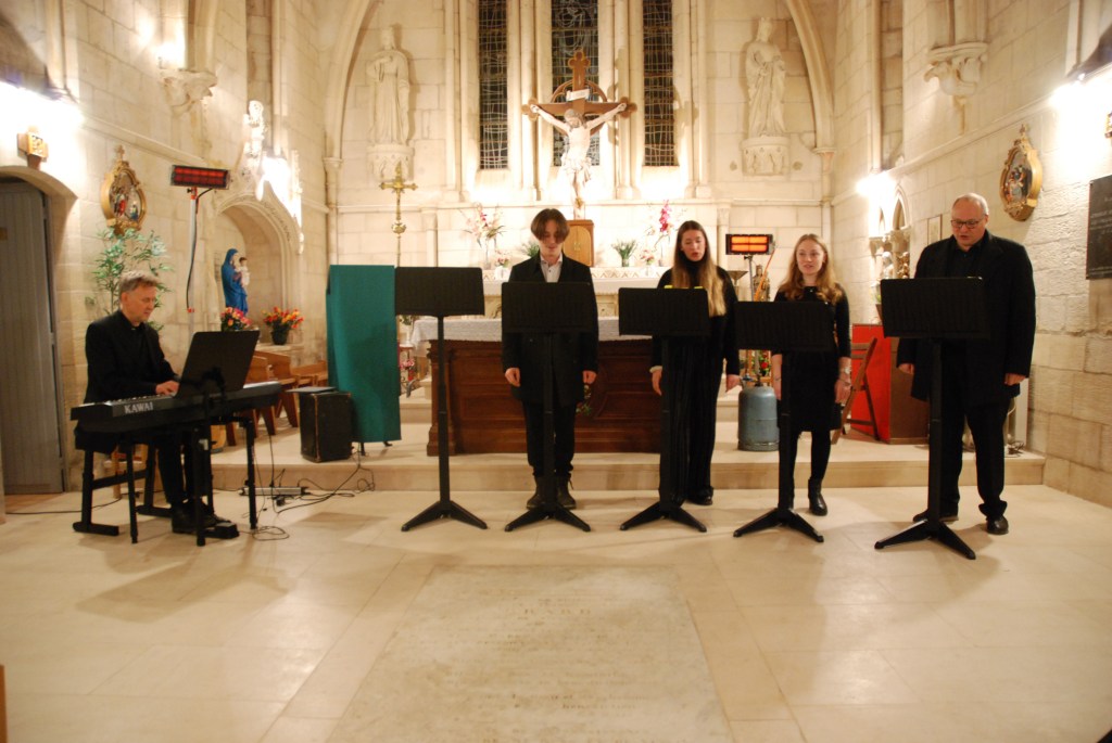 Une petite centaine de personnes ont assisté à ce concert de musiques et de chants traditionnels de Noël. L’assistance a pu apprécier ce moment musical au piano et les voix de nos 5 musiciens présents, un programme d’une heure environ qui nous a tous enchanté. A la fin du concert, les acclamations furent nombreuses si bien que nous avons eu le droit à une dernière interprétation !