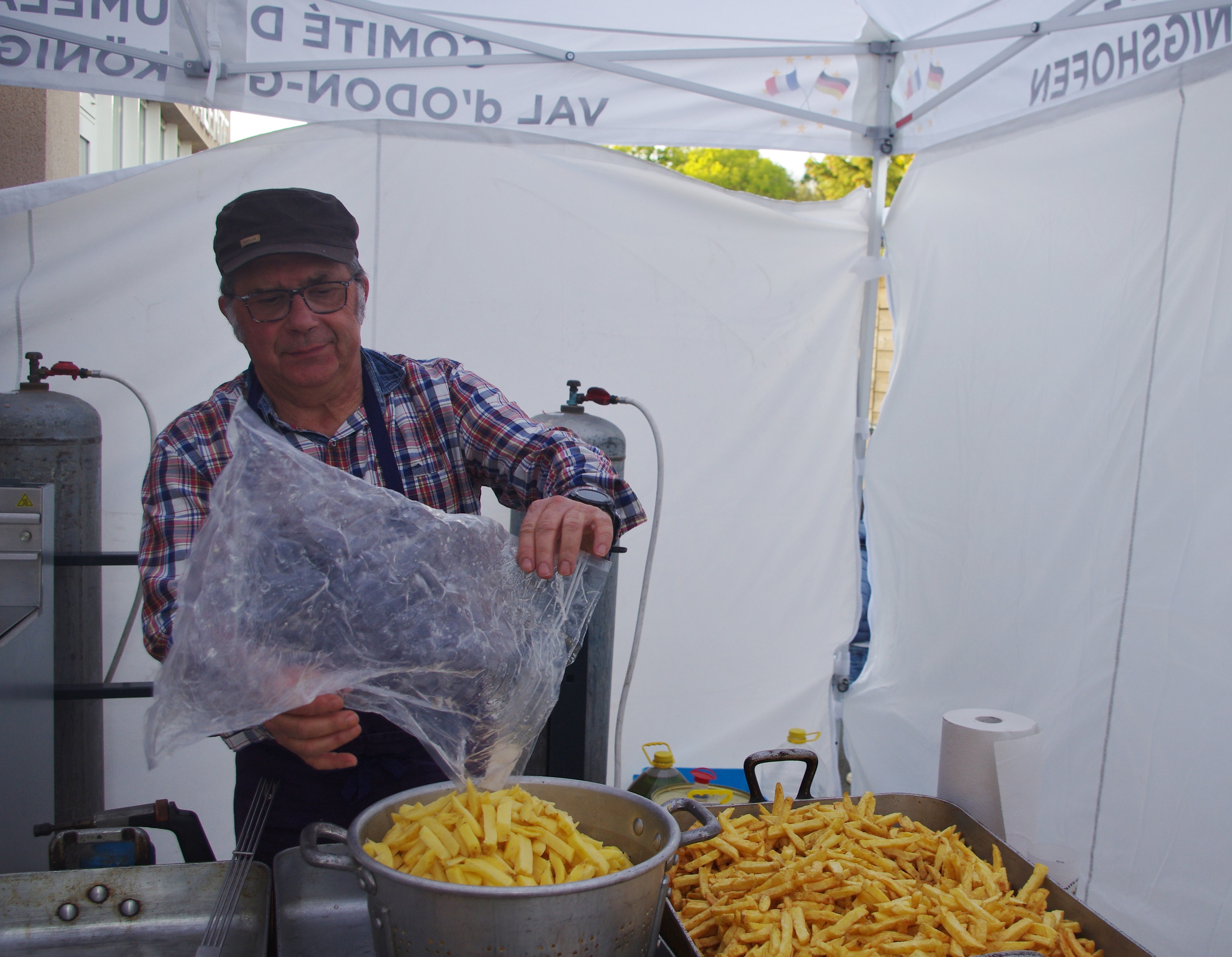 Le Marktfest ! les choses sérieuses commencent : préparation des stands. Das Marktfest! Jetzt geht’s los: Stand vorbereiten