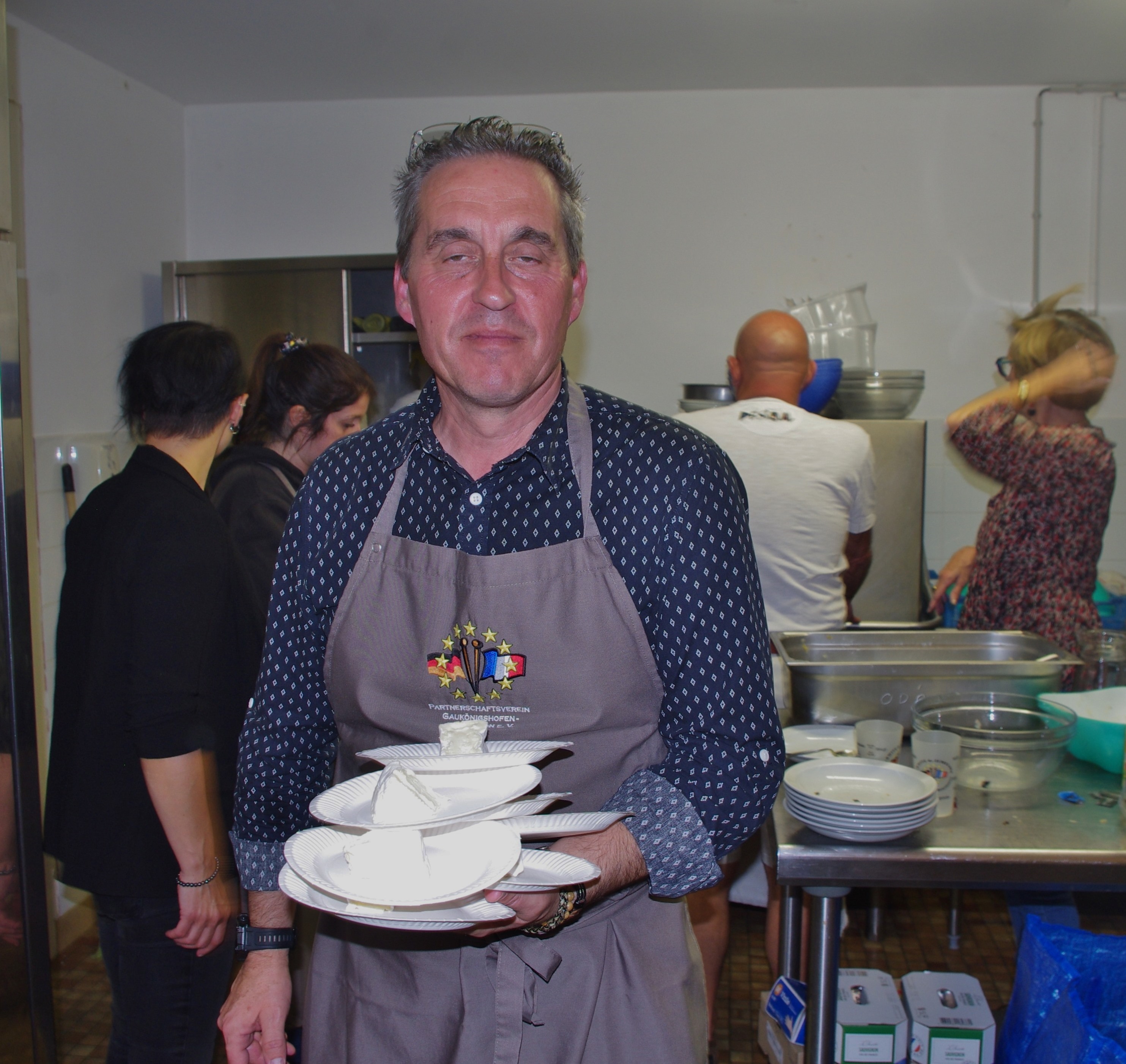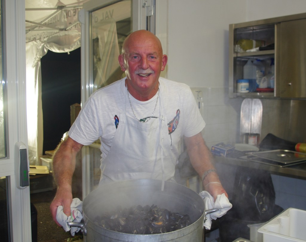 Dès 16h, c’est avec beaucoup d’enthousiasme et d’énergie que membres et bénévoles s’affairaient à la préparation des moules, à la confection de la pâte à crêpes, à pré cuire les frites, à la disposition des tables etc…