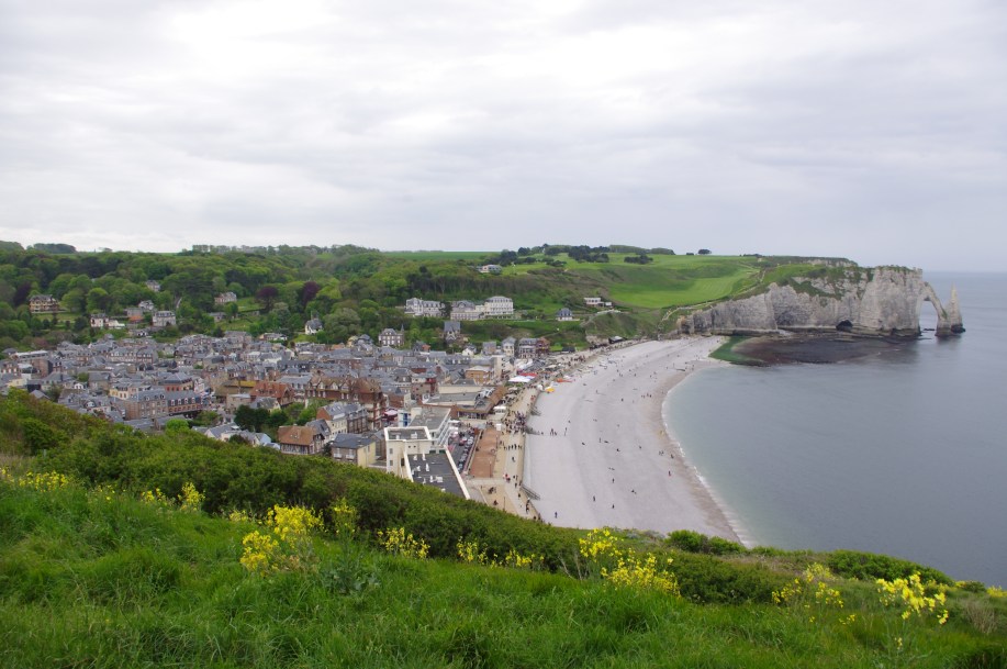 Vue panoramique sur la ville d’Etretat et ses falaise !
